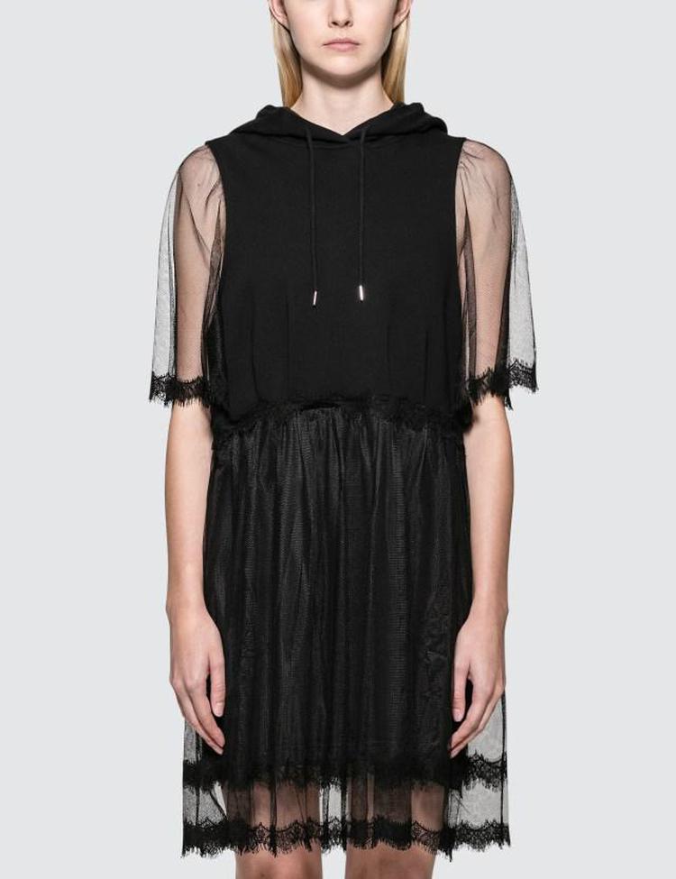 混合连帽连衣裙