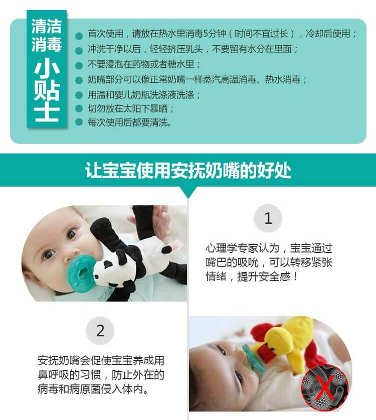 婴儿小粉熊毛绒安抚奶嘴
