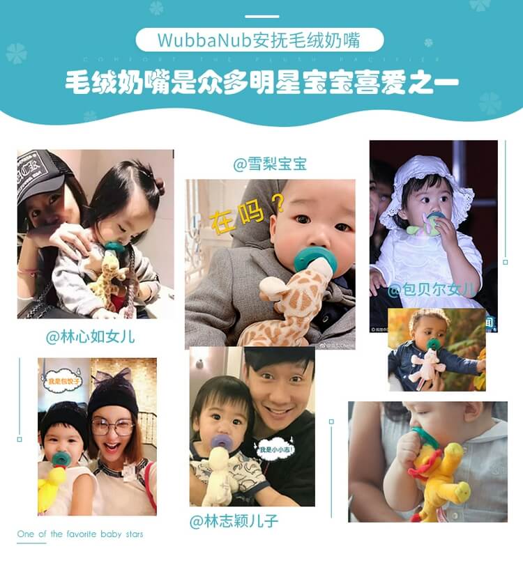 萌萌哒WubbaNub布偶安抚奶嘴, 这几年在中美明星圈里, 越来越火, 曝光度越来越高.