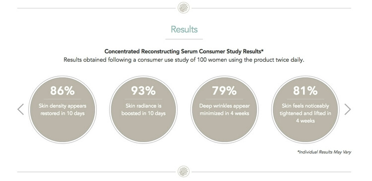 - 86% 的用户在使用10日内有提升肌肤密度的效果- 93% 的用户在使用10日内有明显肤色提亮的效果- 79% 的用户在使用4周内有深纹明显减少淡化的效果- 81% 的用户在使用4周内有显著的皮肤紧致和提升的效果