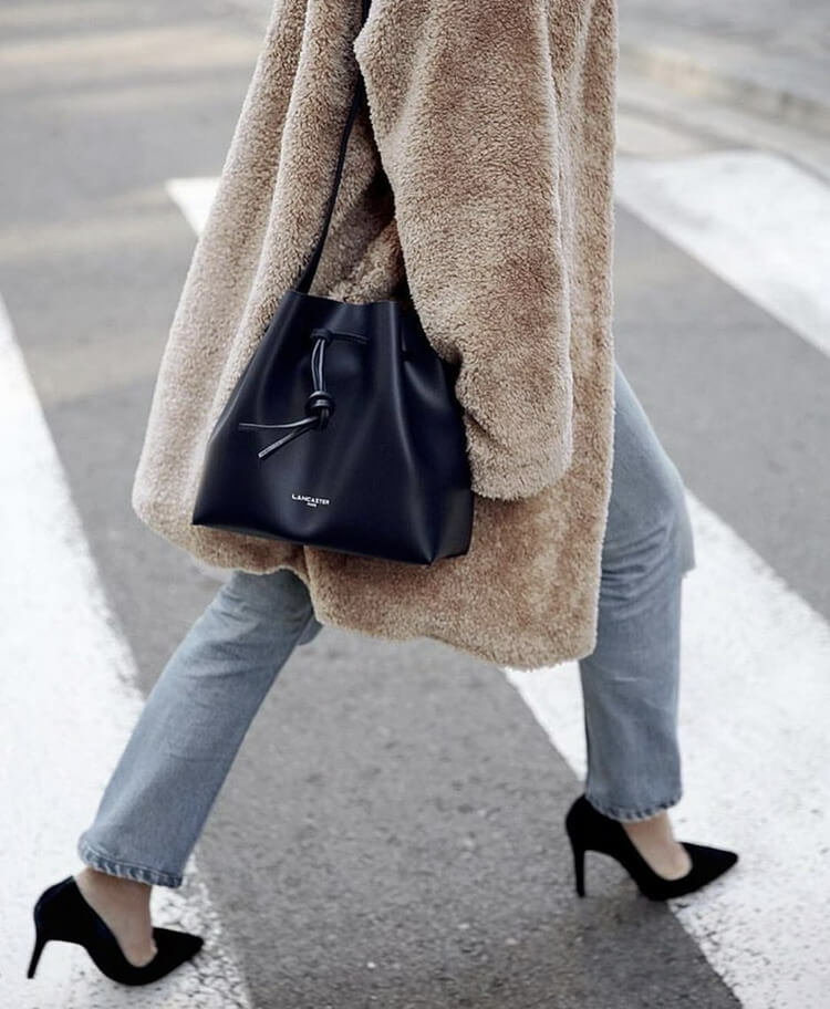 牛皮材质的水桶包,更加具有通勤style,工整有型,简约百搭。