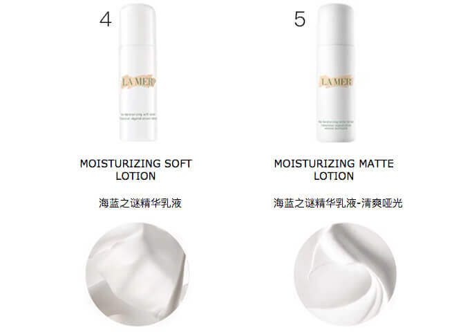 4️⃣精华乳液(The Moisturizing Soft Lotion)轻盈舒爽、一抹即吸收,适合混和肌肤。5️⃣哑光精华乳液 - (The Moisturizing Matte Lotion)柔焦哑光、控油保湿,适合较油性肌肤。